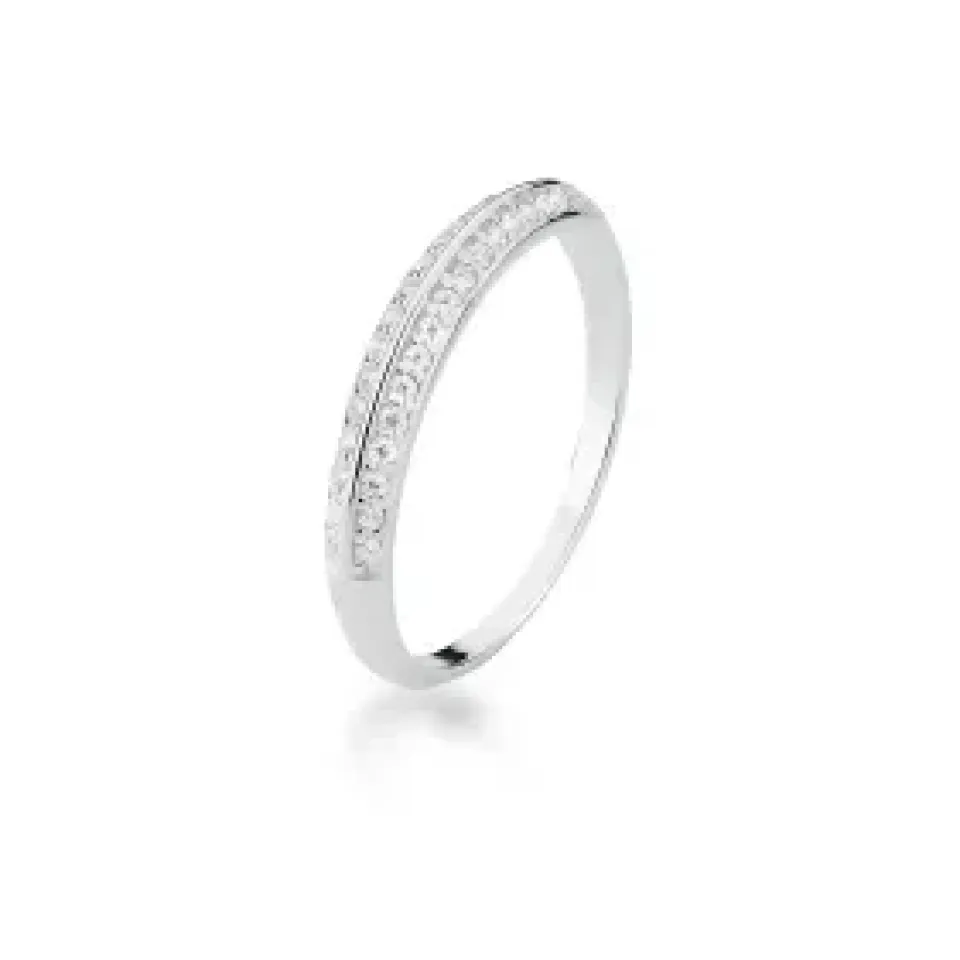 ANEL PRATA 925 CRAVEJADO ZIRCORNIAS BRANCAS COM 2 LINHAS