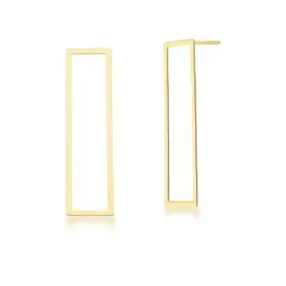 BRINCO BANHADO A OURO 18K DOURADO LISO VAZADO RETANGULAR 12X45MM