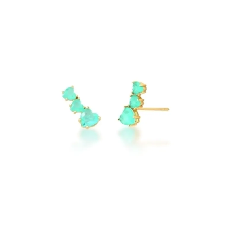 BRINCO BANHADO A OURO 18K DOURADO PEDRA FUSION TURMALINA EAR CUFF 3 CORACAO
