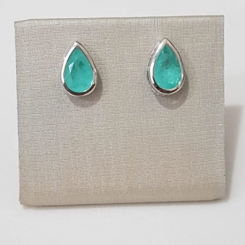 BRINCO BOTAO PEDRA GOTA VAZADO LATERAL 8X12MM BAN. A RODIO /VERDE FUSION TURMALINA