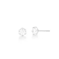 BRINCO PRATEADO PEDRA BRANCA REDONDO 6MM