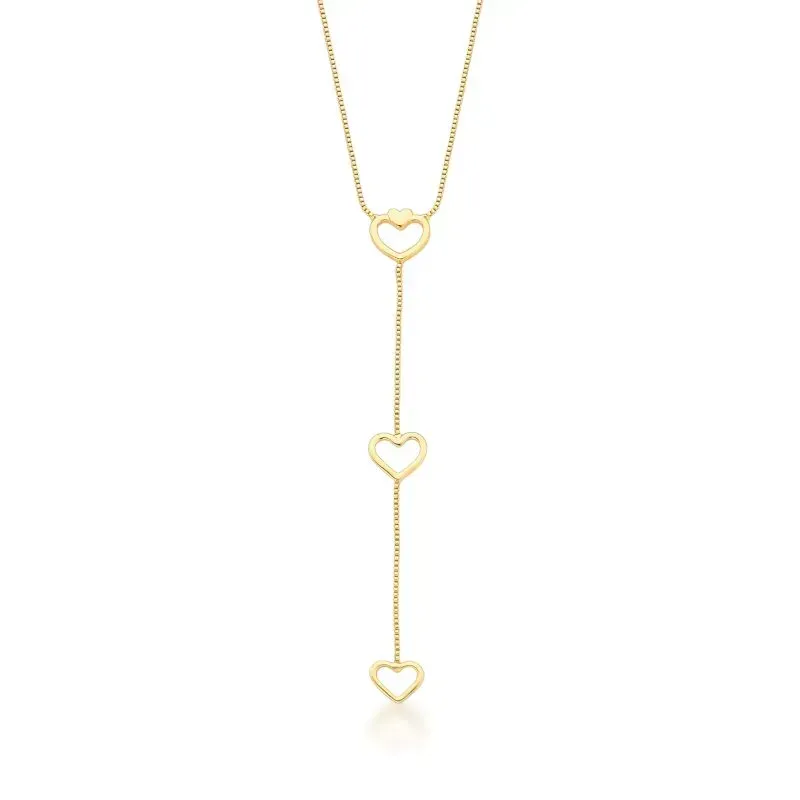 COLAR COM PINGENTE DE CORAÇÃO VAZADOS BANHADO A OURO 18K
